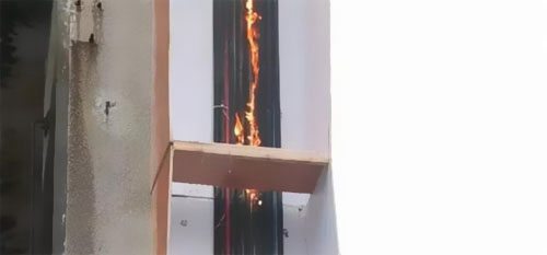 5分40秒,第四層電井電纜悉數(shù)燒起來,由于煙囪效應(yīng)的原因,三層電井構(gòu)成的熱空氣由于密度較低,在電纜井內(nèi)得以往上活動,使高熱氣體不斷地在底部集合,使火勢更快的向上焚燒,不到10秒鐘的時刻第五層電井燃起大火。
